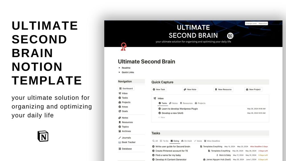 Look no further! Our Ultimate Second Brain Notion Template is here to revolutionize the way you work, plan, and create.
